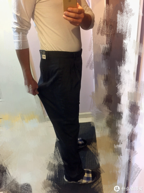 重点是侧面!!!看看这裤腿有多粗!!!!裤子一点版型也没有,还好我妈妈会这方面手艺,准备让她改一改给爸爸穿吧。。。