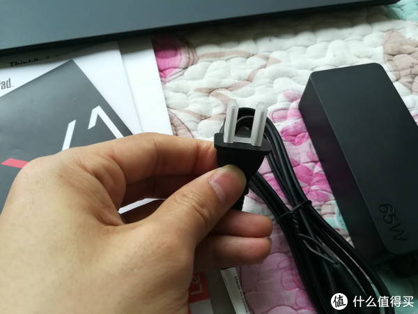取出机器与配件,有65W功率的电源适配器,接口为USB Type-C,插头为国际通用二插,可以直接在国内使用,倒是也挺方便。