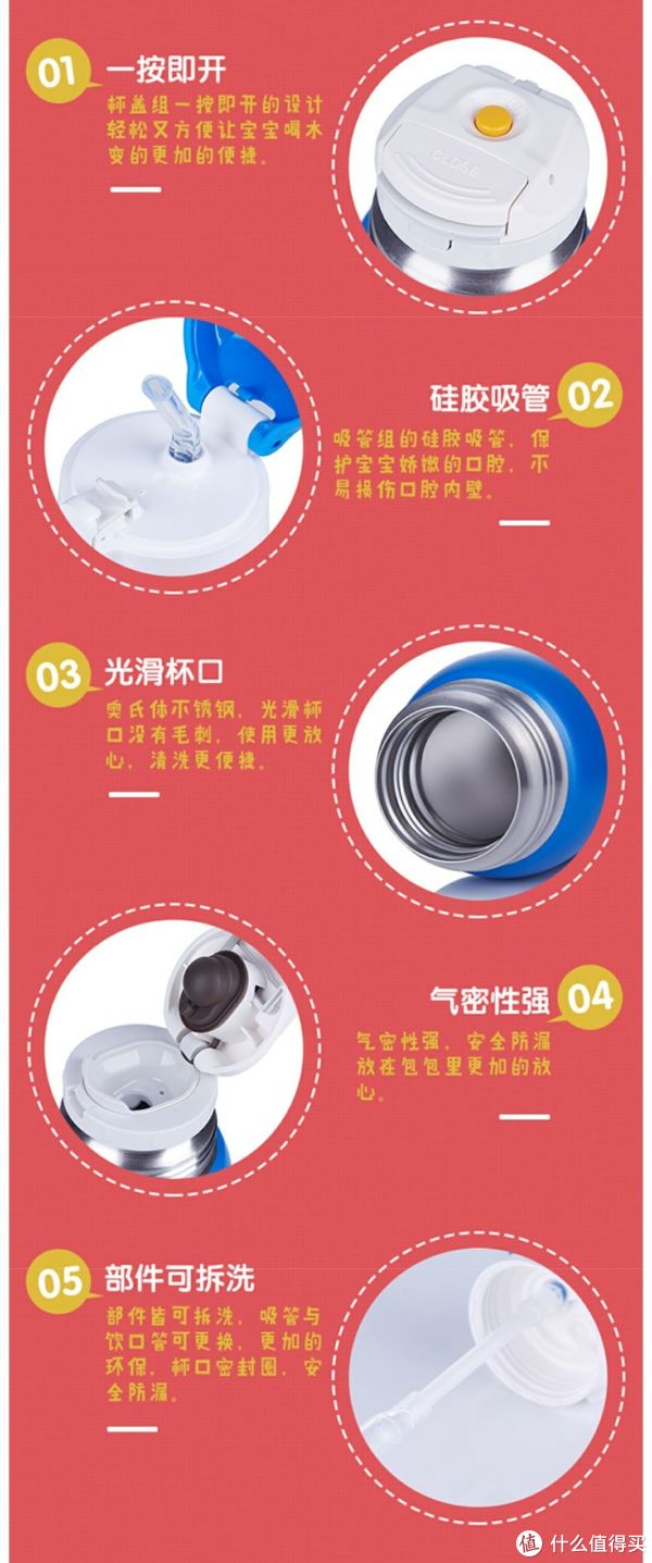 膳魔师的做工不用多说,我家还有两个大人的保温杯都是膳魔师的,用了快三年了,保温效果杠杠的。基本早上装的温水,保证10个小时没有问题,而且这种封闭式的水杯即使不喝完,也是一天一换水,而且要涮洗吸管和内壁,特别是夏天容易有异味。