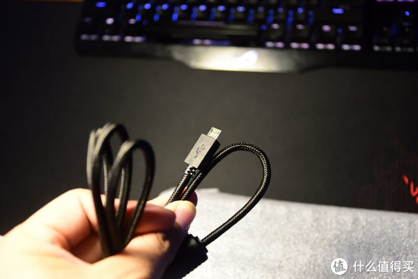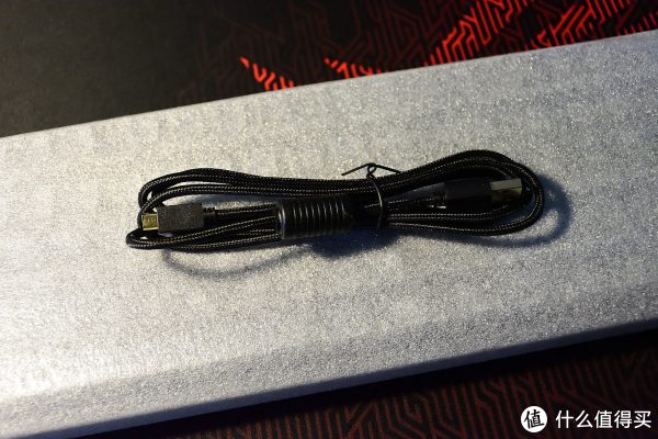 键盘的数据线采用分体的设计,包网材质,还有屏蔽环。
