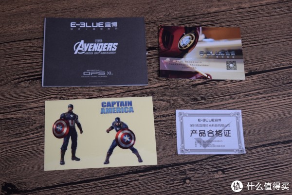 一张说明书,一个不造什么的卡片,一张美队贴纸,还有合格证就是全部的配件了
