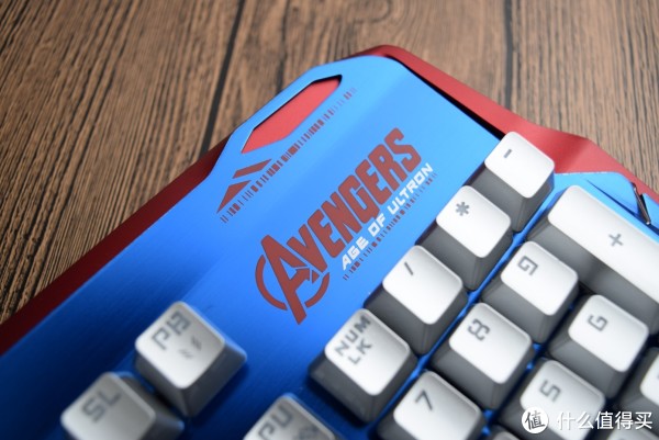键盘右上角的指示灯区域也取消掉,印上复仇者联盟的标志