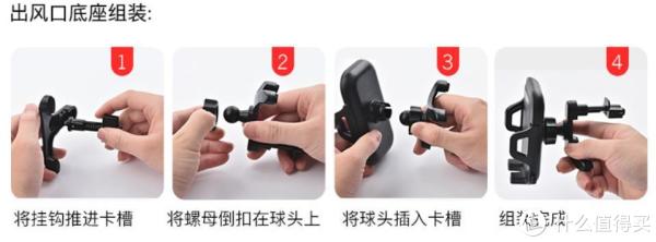 支架有两种组装方式,一种是放在出风口底座,一个是放在中控台或者玻璃上的吸盘式底座
