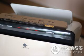 开机后默认为自动运行,前面板微打开,吸收室内空气,顶部板向上打开吹出净化后的空气,右侧会有绿色显示的湿度,自动调节是否需要加湿功能,这个北方的冬天会很有用。