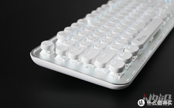 设计上追求复古感,所搭配的是一套圆形键帽,因此键盘上手适应需要磨合时间。圆形键帽之间边角间隙比传统键帽大,并且键帽正面面积亦更小,所以指尖对于键位定位感会有所下降,加上键帽本身平胸高度,初次上手相对容易出现误按情况,需要一个重新学习、记忆的过程。