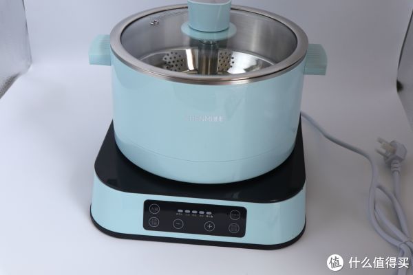简单说一下臻米升降火锅的外观,我买的颜色是青色的,总共有三种颜色可以选择,感觉青色跟宿舍环境更搭一些。