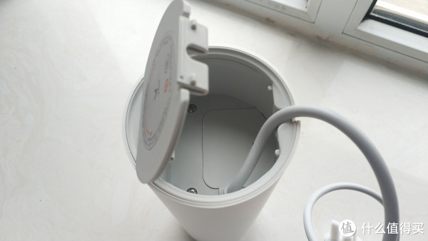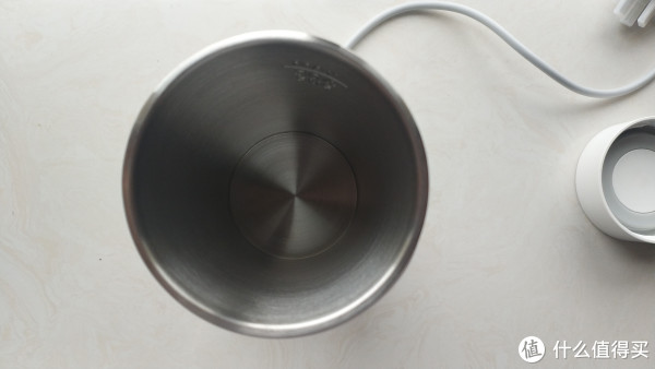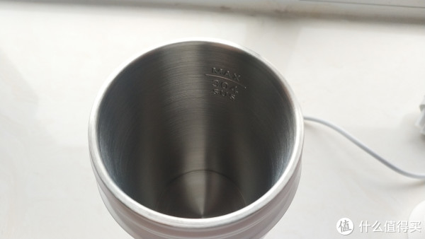 抛去电源线收纳仓,还有加热板,基本上装水的地方就在我手比划的地方,也就是整个壶一半左右的位置。