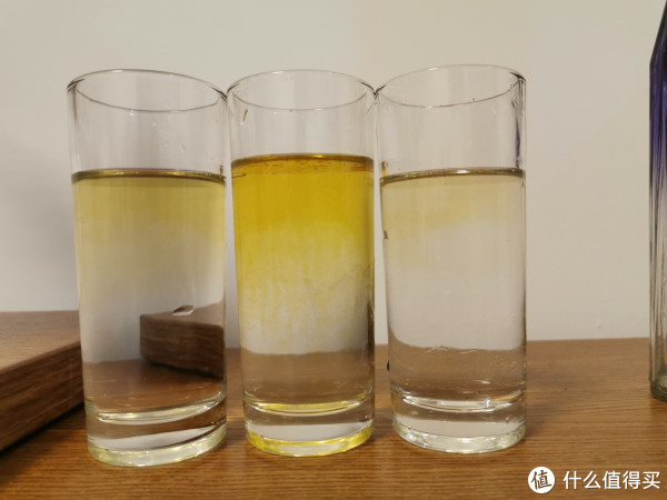 三杯水,分别是,矿泉水,过滤水,自来水,可以看到过滤出来的水黄色最深,对照水质电解器的说明书,显示安全可饮用,但不知道是不是颜色越深代表矿物质含量最高呢!