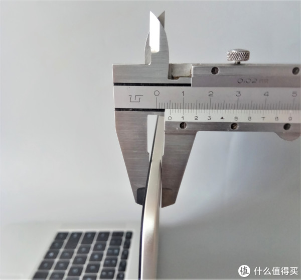 ▲游标卡尺测量,荣耀MagicBook的机身厚度约为16mm,作为一款带有独立显卡的笔记本,算是足够轻薄了。