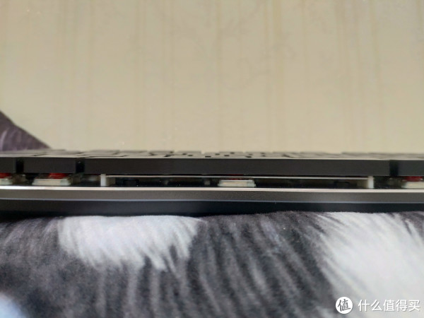 背面设计的很平整,没有脚撑,这个对于习惯有坡度的键盘使用者,本身键帽纯平,还不能调节坡度,可能会有点不习惯,需要时间适应