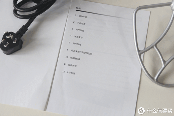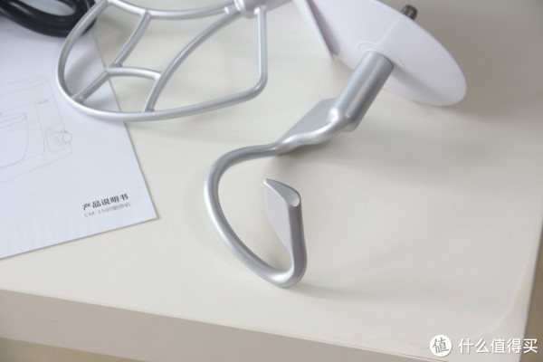 产品说明书,及基础配件:和面棒(和面钩)、搅拌棒(人字桨)、打蛋笼(这里漏了拍,看下面的图补上)。银色的,看着挺高档,搅拌头与主机连接处还有圆形小挡块,这样就不怕食材飞溅到主机连接处了,个人觉得这个是亮点。