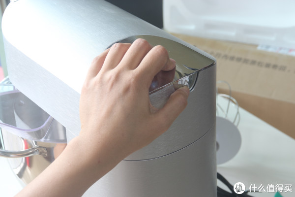 抬头旋钮扭动,就可以把主机的搅拌头抬起来了,这样方便安装搅拌配件、取下清洁。