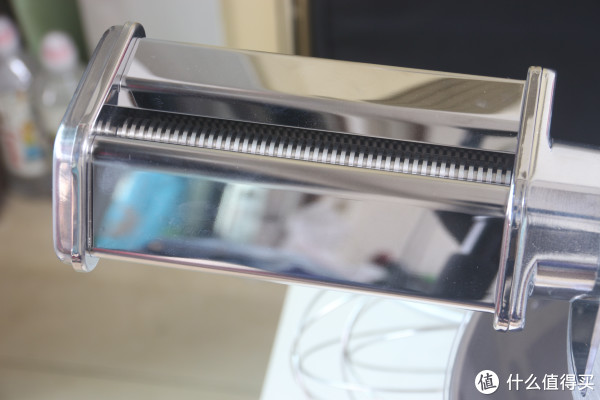 细节展示,这个压面机三件套比我那个手动压面机好多了~细面和宽面的切面机只能固定一档,压面片的压面机则有0-8档可以选择,8档是最宽的,0档最薄,我都是从8档到1档反复压,最后1档时换成切面机切成面条的。