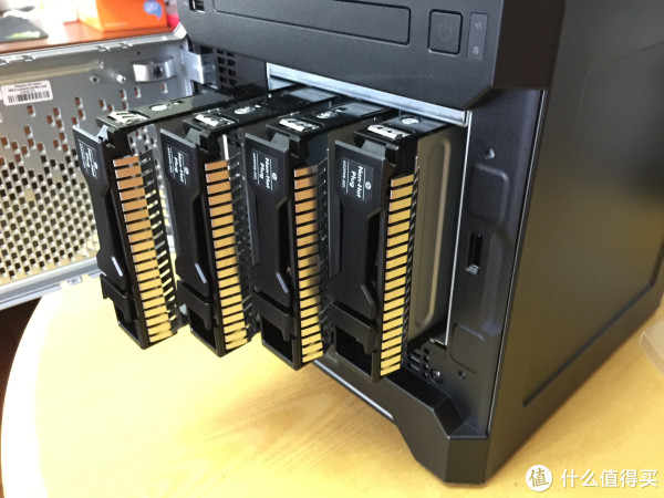 打开前盖,可以看到四个盘位,旁边还有易于拆卸的螺丝刀,用这个可以把整机都拆完。