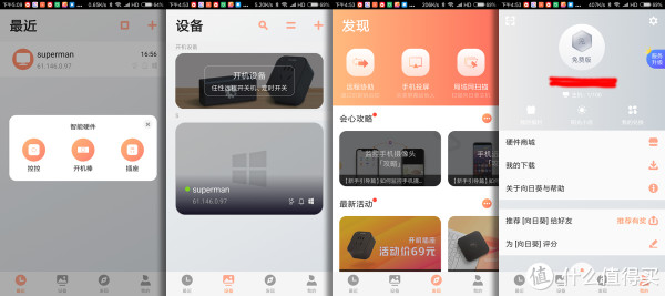 对应的手机端则由最近、设备、发现以及我的组成,不过在内容和视觉效果上更注重交互式设计,使用起来比PC端更加的人性化,而且功能操作上也比电脑端更加便捷。
