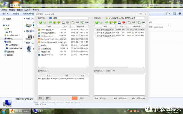 软件里面提供的远程文件传输功能可以被当做简单的网盘使用,就是使用界面有种活在XP时代的感觉,这种既视感很强,使用中只需在所需文件上点击传输,即可将文件传输到所连接的机子上,操作方便简单,在无线局域网72Mbps带宽下,测试文件传输能达到3M/s左右。