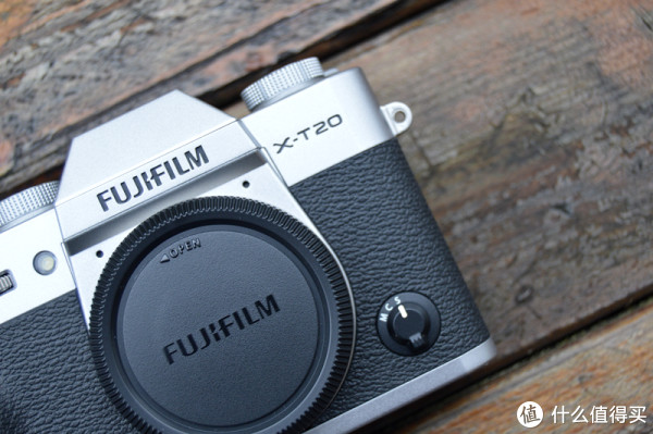 机身的传感器盖上方有FUJIFILM的字母凹印,做工是非常的细致,右侧上方是X-T20的型号刻印,下方是M、C、S三个对焦模式选择的开关选项,富士相机的这个设置区别于其它品牌,不过后期熟悉后使用起来倒也没有什么别扭的▼