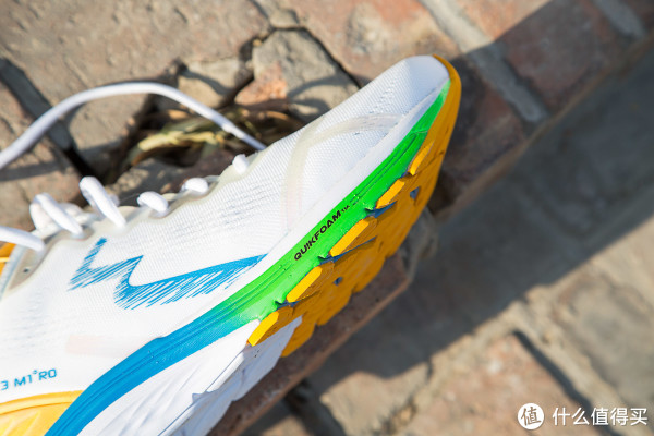 SPIRE 3的鞋底整体采用QU!KFOAM缓震材质面,在前脚掌QU!KFOAM前掌采用直接接地的设计,让前脚掌缓震更加出色。黄色的部分是发泡橡胶的三段弯曲设计,保证了前掌可以多次弯曲之外抓地力也得到保证。