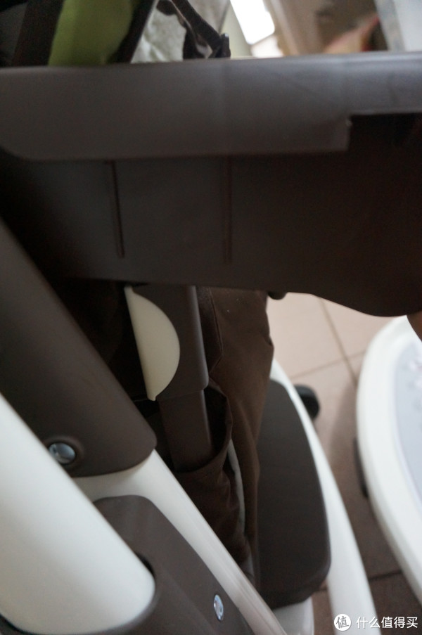 侧面主架的滑动托,有大约5个档位,控制餐椅的高度,满足绝大多数餐桌的高度需求。