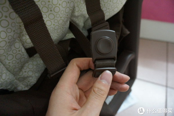 五点式安全带,这是我对国外宝宝产品最喜欢的一点!只要是宝宝坐的设备,都会有五点式安全带,包括之前张大妈推荐的三轮小童车,都有五点式安全带,可是国产的那些产品设计的要多鲜艳明亮就有多鲜艳明亮,可是安全考虑真的不够。这个暗扣,我太太按了半天没按开,还说坏了,我也是用了比较大的力气才按开,所以可以放心5岁以内的宝宝绝对自己打不开!非常有助于培养宝宝良好的进食习惯~