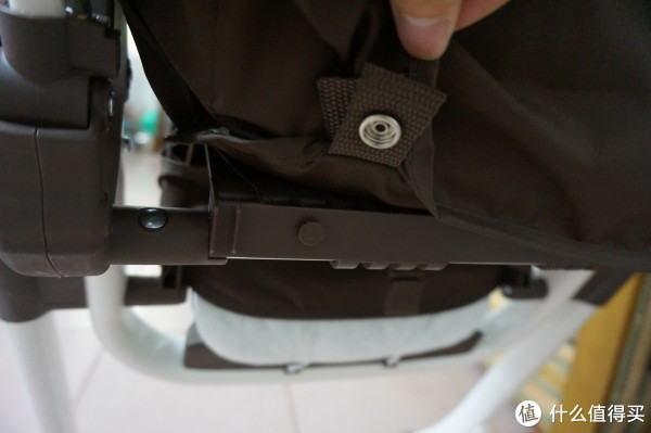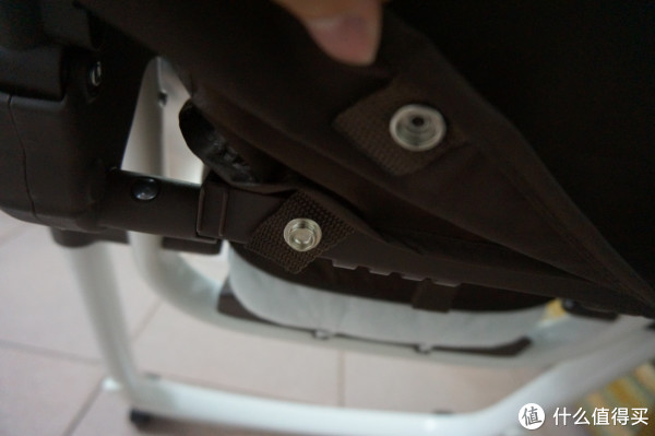 餐椅背后的双层按扣,用来固定餐椅罩,也非常方便拆卸,美亚购买链接里面有别人妈妈展示全程单手拆卸椅罩的视频,可以看看,在评论里。
