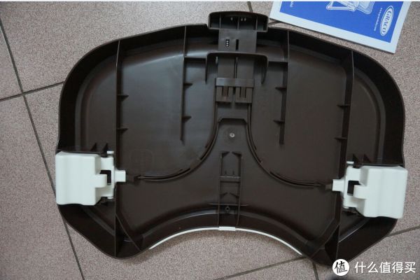 餐盘下面,两个白色可以将餐盘稳稳的卡在餐椅托上,按动顶部的开光就可以根据宝宝需要的空间前后滑动餐盘~~(其实~~也不算什么高科技~