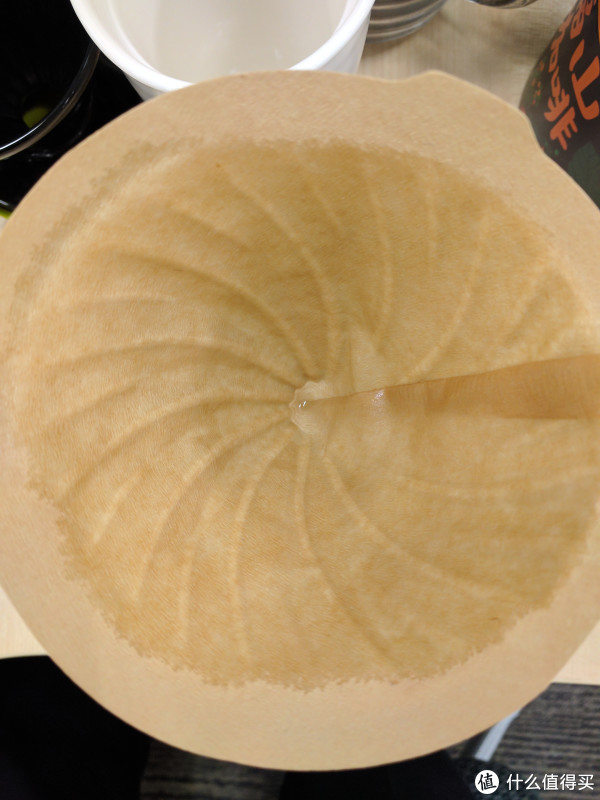 这是Hario V60滤纸打湿后的样子,我几乎没动手整理,只有滤纸接缝处贴合不是很好。