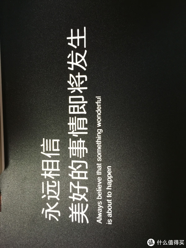 开张侧面图吧,上面的几个大字是:“永远相信美好的事情即将发生”,下面还有英文,每次看见都让我想起雷布斯那充满喜庆气氛的英语。整体的做工和包装还是既简单又简洁的,非常棒,还是要点个赞的