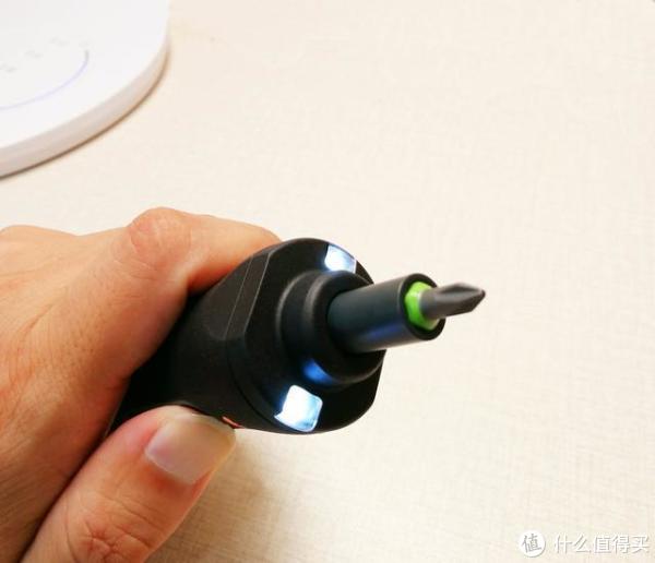 再来说说使用,配备2颗LED灯,在使用时只要一启动螺丝刀,2颗照明灯就会启动,给你完美的DIY视野。