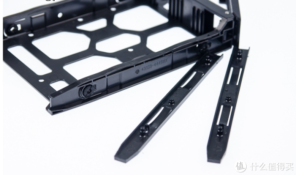 硬盘架针对3.5吋的硬盘则是采用免工具的安装设计,而且在固定孔位上还有加上橡胶软垫来减少震动。硬盘架除了可以支援3.5存的硬盘安装,在架上也有预留符合2.5寸硬盘规格的螺丝固定孔,让有需要的使用者也可以搭配2.5寸硬盘使用。