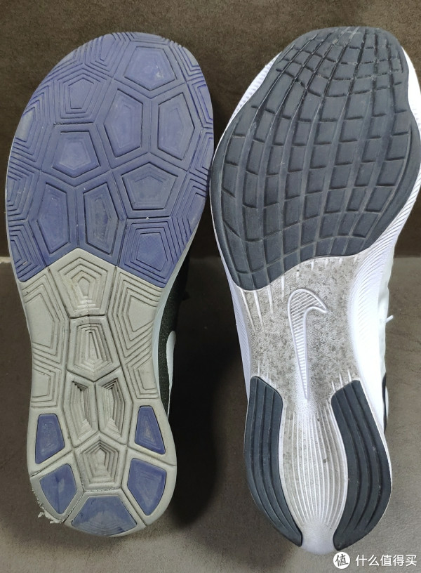 不知道大家能否看清楚,前掌的细微纹路还是有磨损的。以前观察过亚瑟士的K22和N20,跑完50公里后这种情况也没有发生,大底橡胶的耐久度非常扎实,而这款NIKE ZOOM FLY 3就相形见绌了。