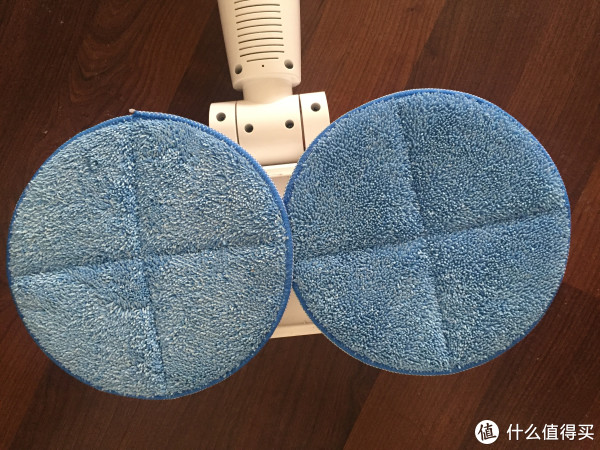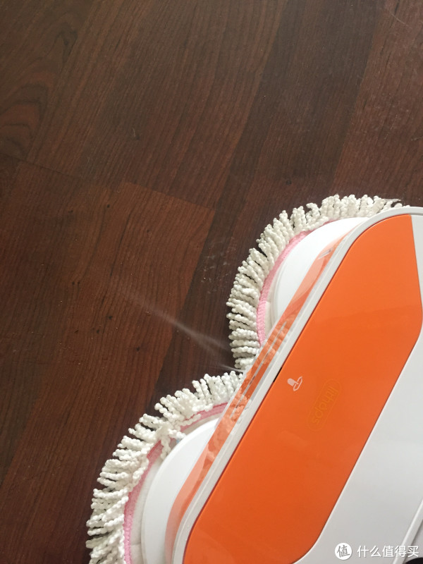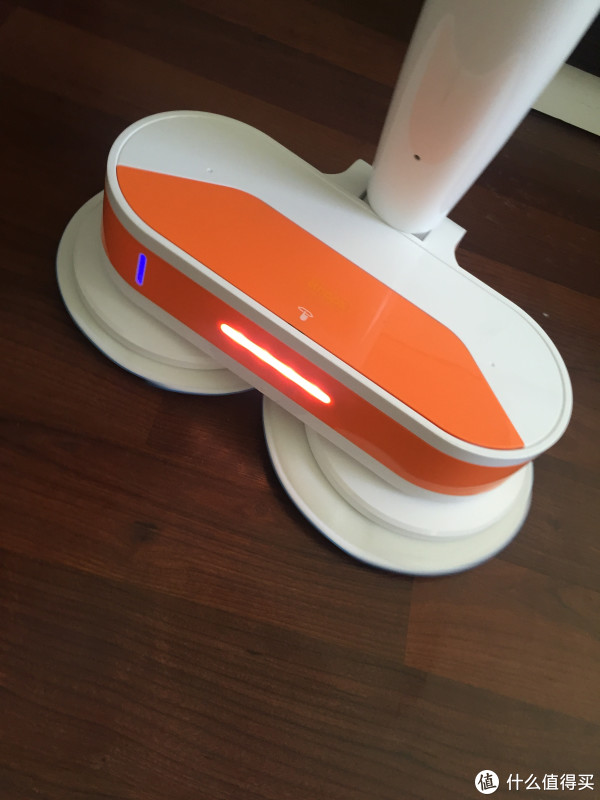 拖完就迫不及待的换上了蓝色拖布,进行打蜡。对了忘了介绍led灯了,一工作就会亮起,可以清楚的看到哪里需要着重清洁。