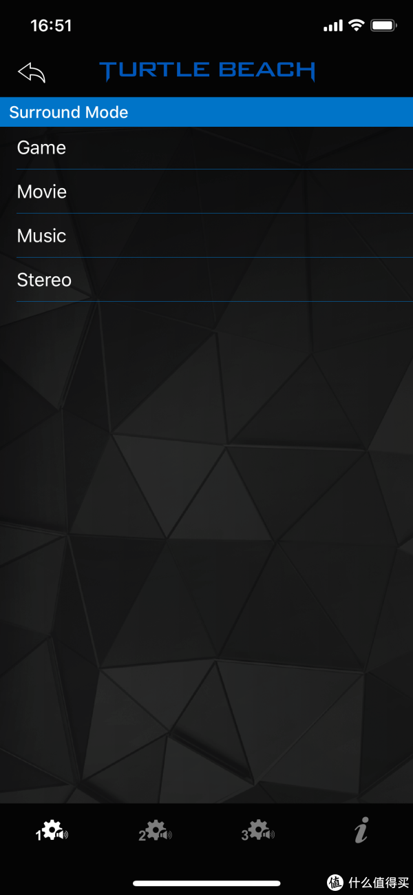 环绕声模式选择:在手机上最快速和方便的就是可以调节耳机的声音模式,直观易懂,有游戏、音乐、电影和立体声四种模式。