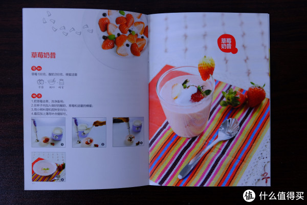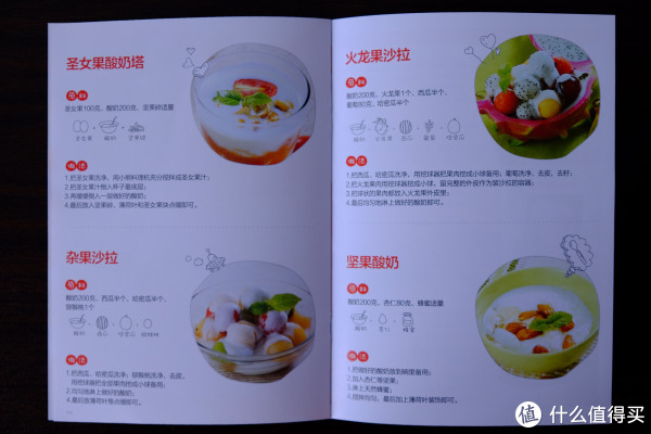 随箱附带的有一本酸奶味力策,里边有一些酸奶奶昔和沙拉的简单教程