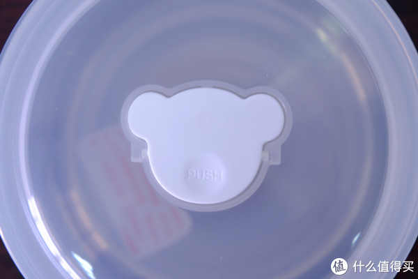 官方介绍说是个密封阀门,保持跟盖子表面平齐是密封状态,要打开盖子需要先按下“PUSH”的地方,然后可以比较轻松的取下盖子,我简单试了试,密封后是比较难打开的。