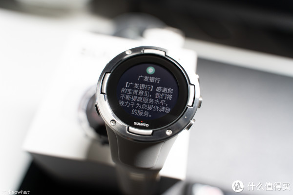 值得一提的是SUUNTO 5在连接手机后,还支持短信和QQ提醒等,短信的话显示的文字行数也比较多,单屏显示不够的话还可以下翻,不想拿出手机的话腕表倒是可以当做第二屏幕使用。