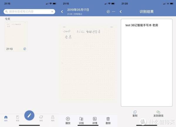 当手机应用打开的时候,36记可使用实时模式,所写即所得,一笔一画均传输并储存在手机中。当然,手写识别准确率还是不错的,哪怕像老房这样字写的难看的,而且中文、数字以及英文混合识别毫无压力。当然对识别结果进行编辑修订也是支持的。在详情中也可以添加标签和备注,方便日后查询。