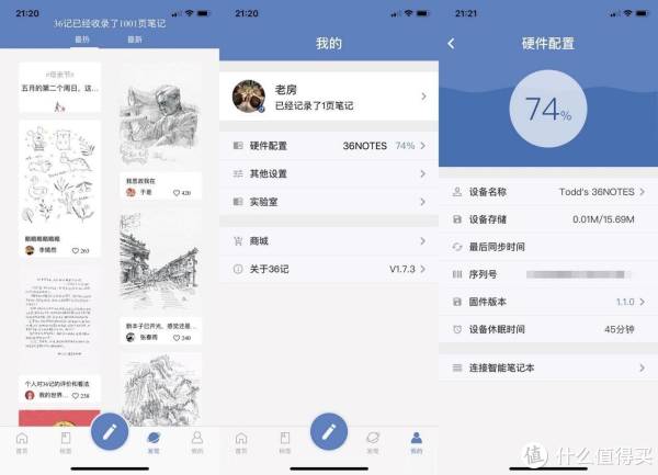 设置方面,可以查看设备剩余电量、设备存储的使用情况等,通过固件升级也能时刻保持提供新的功能。36记同样支持云同步,一个账号多设备共享内容。