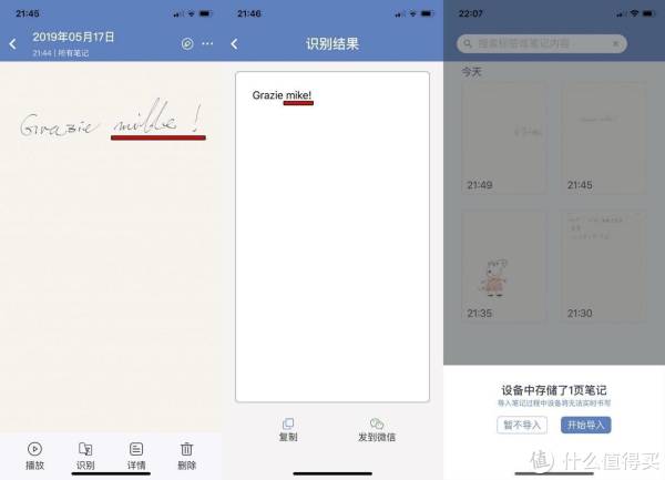 不过,文字识别也不是万能的。意大利语“Grazie Mille!”中的Grazie和感叹号都能完美识别,mille却识别成了mike,好吧老房知道自己字写的潦草,但不清楚36记是否是优先识别英文单词并给出智能结果?还是每个字母识别的?