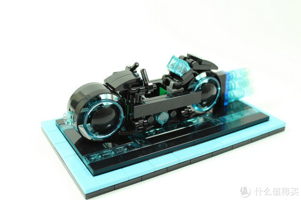 这次由乐高玩家BrickBros UK所设计的光轮机车完整重现了电影里的样貌!素黑的车体散发出亮蓝的光芒,符合乐高人偶的比例,整体精致小巧但车体形状的还原度相当高,光轮的部分可能是值得BrickBros UK 和官方设计师好好讨论的地方,毕竟电影中的光轮是整个空心的;值得一提的是人偶背后用小轮胎和亮蓝小圆点呈现的「身份盘」,还有漂亮的展示基座。
