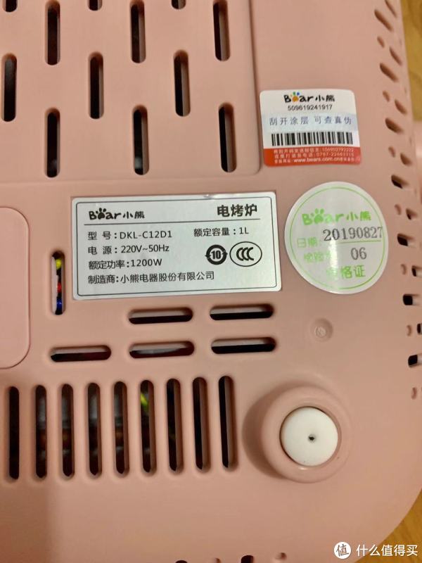 底部的贴纸有生产日期的合格证和功率参数等信息,跟盒子外面的信息一致。