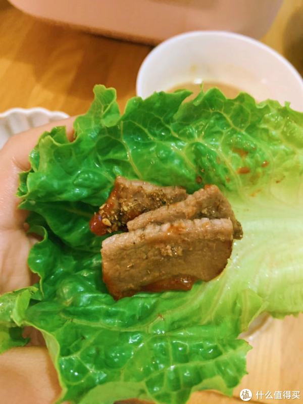 烤好的牛肉剪成块用生菜包好了吃,一本满足