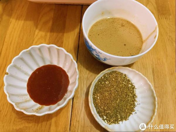 特地准备了三碗调料,芝麻酱、烤肉酱、干蘸料,一次吃三碟简直爽歪歪