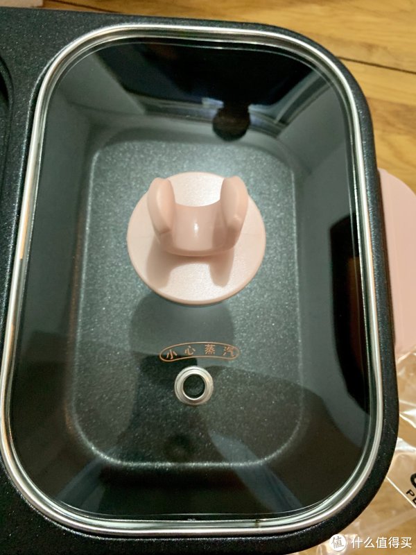 钢化玻璃里的盖子上有可以放置锅盖的小架子和出气孔。