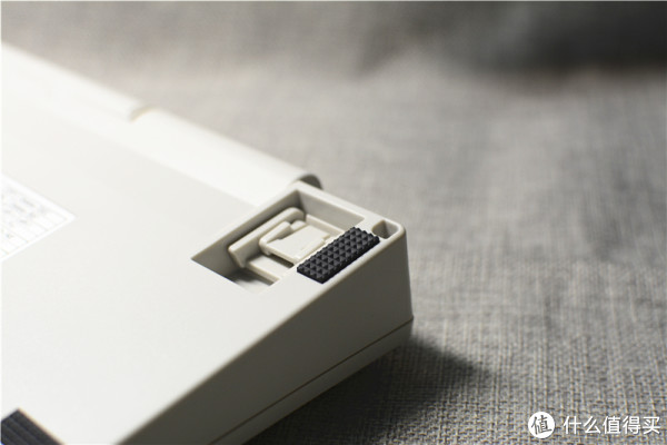 键盘外壳为ABS塑料,为了更贴近老式键盘手感,外壳做了轻微的磨砂处理,表面质感非常不错。键盘造型简约古朴,键盘后侧有“迷之突起”之处,那个位置是电池仓,和键盘开关。凸起造型,让我想到了thinkpad笔记本的外挂电池,难道设计思路由来于此?