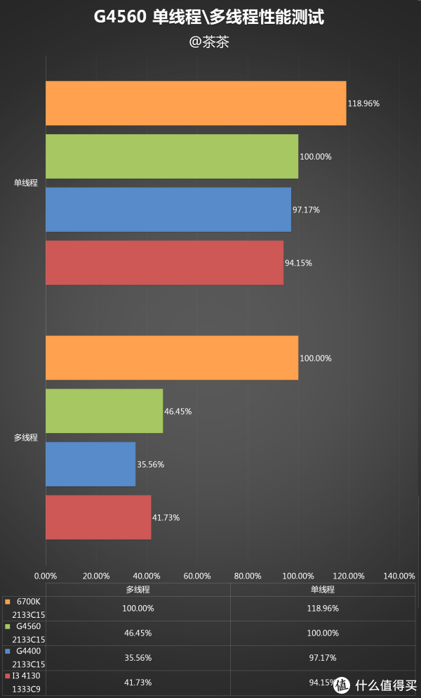 多线程:多线程性能G4560已经达到老款I3的水品,已经是较大跨度升级。