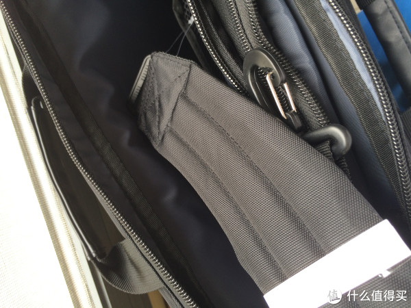上图是侧面的扩展层拉锁,拉开后包的面子拉宽了3厘米左右,内部空间变大,可以将更多的东西装入,适合短途出差的衣物等杂物。