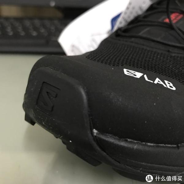 鞋头的防撞保护设计。大写的“S”以及“S/LAB”非常醒目。