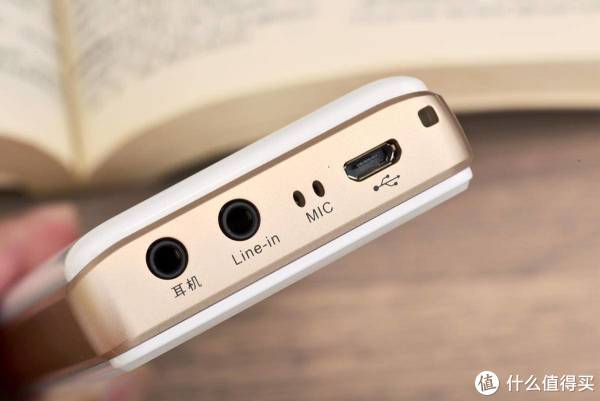 插孔都设计在顶部,有耳机孔、line-In、双麦克风阵列、Micro USB接口。双麦克风阵列的设计非常合理,毕竟复读机首要任务就是为了学好口语。而Line-in线可以连接其他设备进行转录。帝尔D67还能通过转录功能,使得过往磁带、CD、VCD等学习教材转为MP3,方便学习。