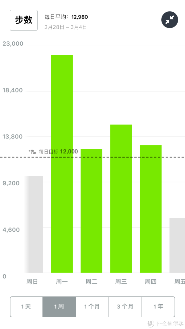 主要是显示当前心率、步数、公里数、爬楼数、卡路里、活跃时间等,还包括体重目标、睡眠目标等。目标如果达成,进度条是绿色的,否则是红色的。上面这张图我专门找了一个达到目标的日子截了图。